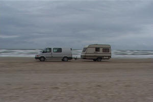 | Auto's mogen op het strand in Lokken |